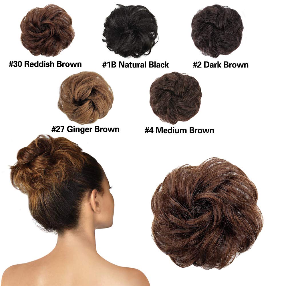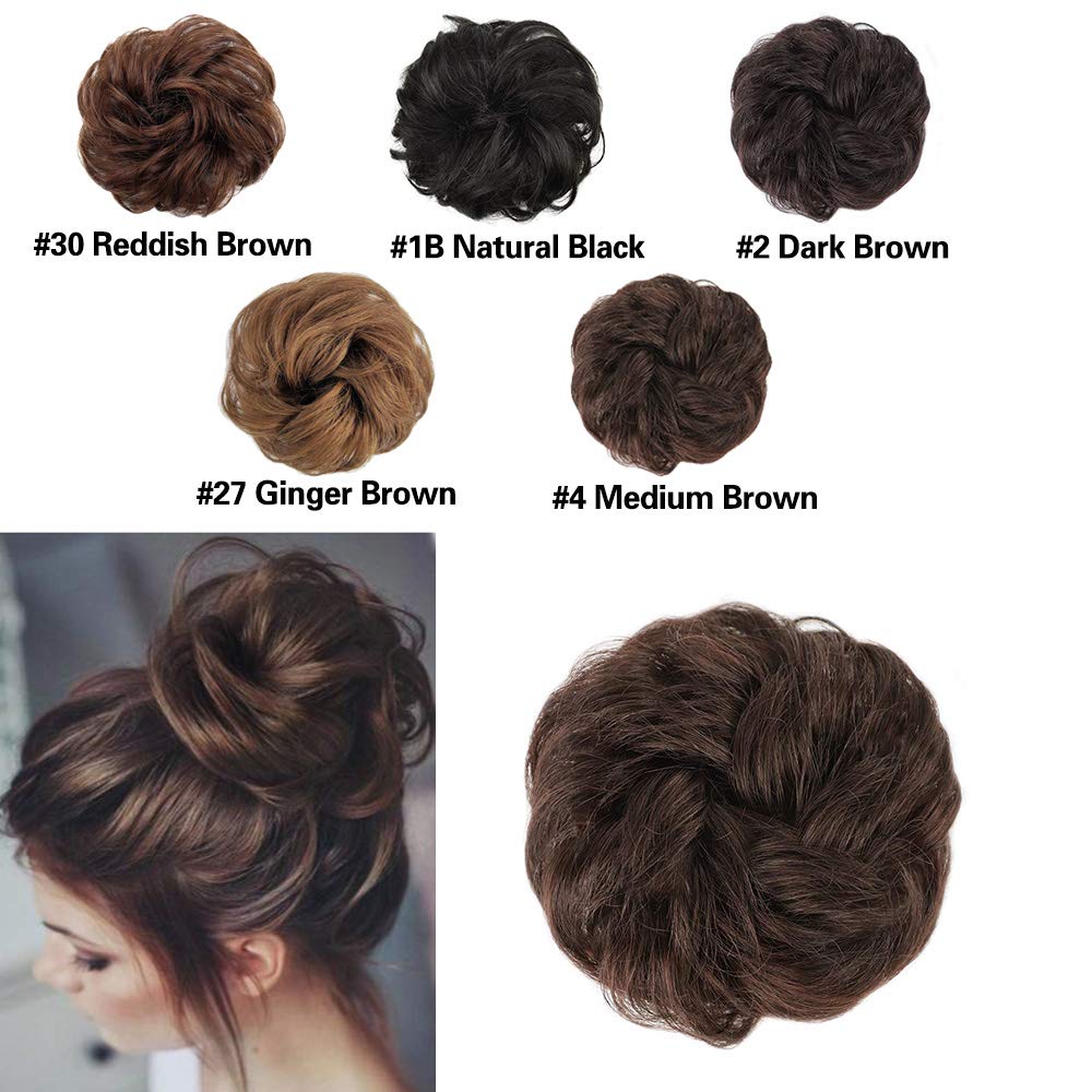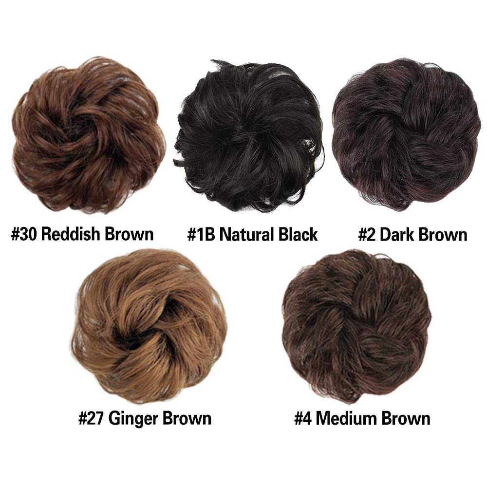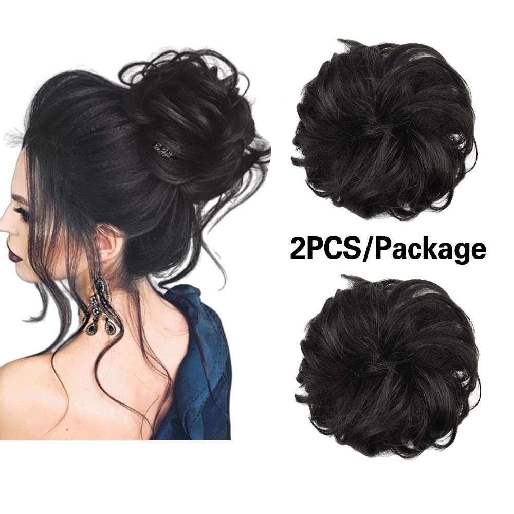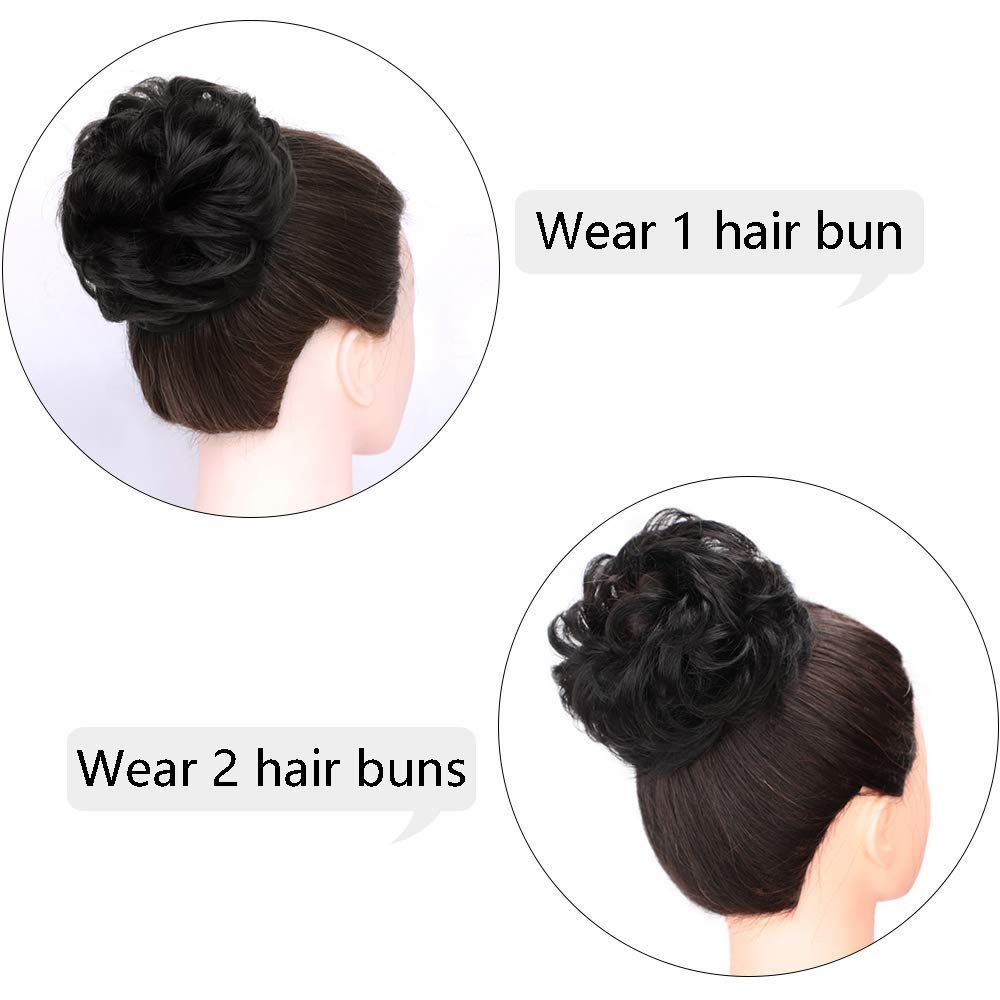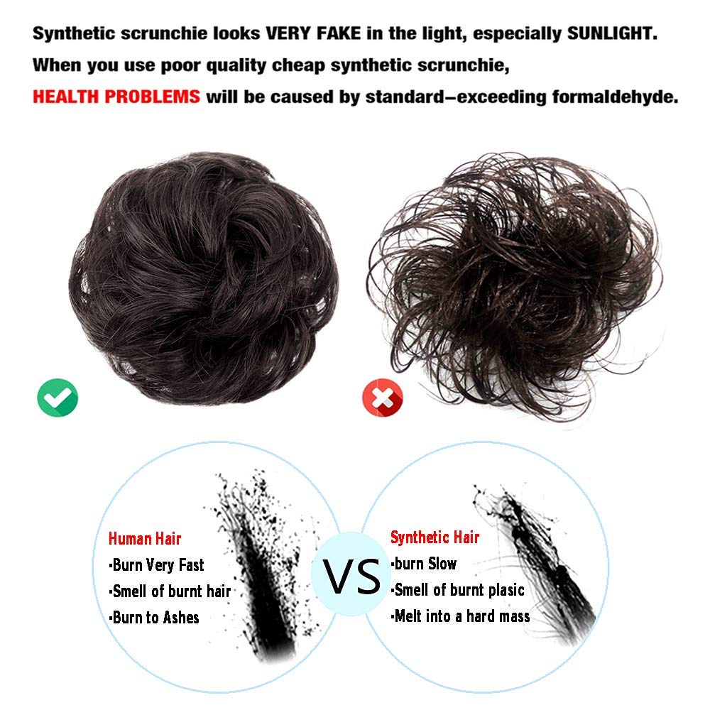 100% Really Bun Human Hair 2 PCS Messy Bun Scrunchy Wave Curly Chignon Hair Piece for Women Kids and Wedding Updo Donut Hair Clip Extension Ponytails