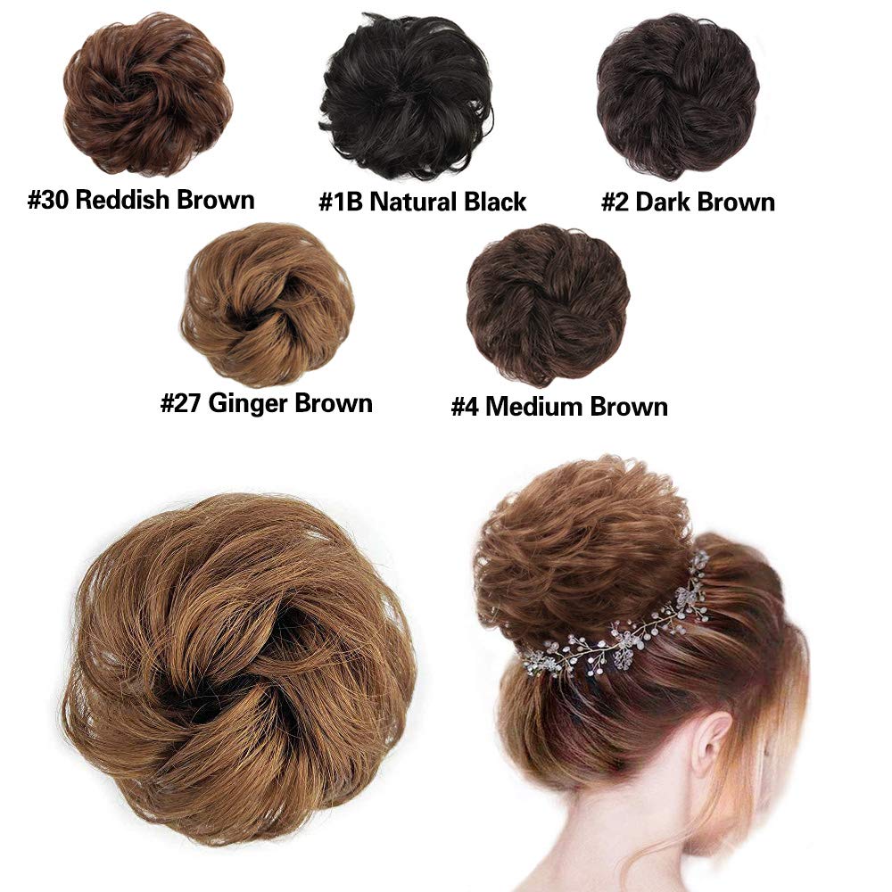 • & Messy Wavy curly Bun : 100% human hair bun. completely natural, not shiny, soft and comfortable to wear. Weight: standard thickness : 25g/piece; 2 Pieces together will more full.